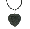 Preseli Bluestone Pendant Heart X-large Silver. This statement necklace features a large smooth heart pendant which has been made with carved Preseli stone, it is presented on a black leather thong necklace.