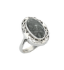 This traditional ring has a large oval piece of hand-carved Preseli Bluestone which is polished to an immaculate shine, surrounded by a fairly wide Celtic-style cross-hatching of sterling silver which spreads to the shoulders of the ring. Matching items available,